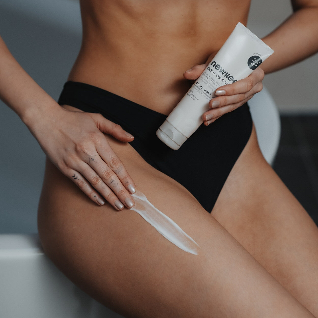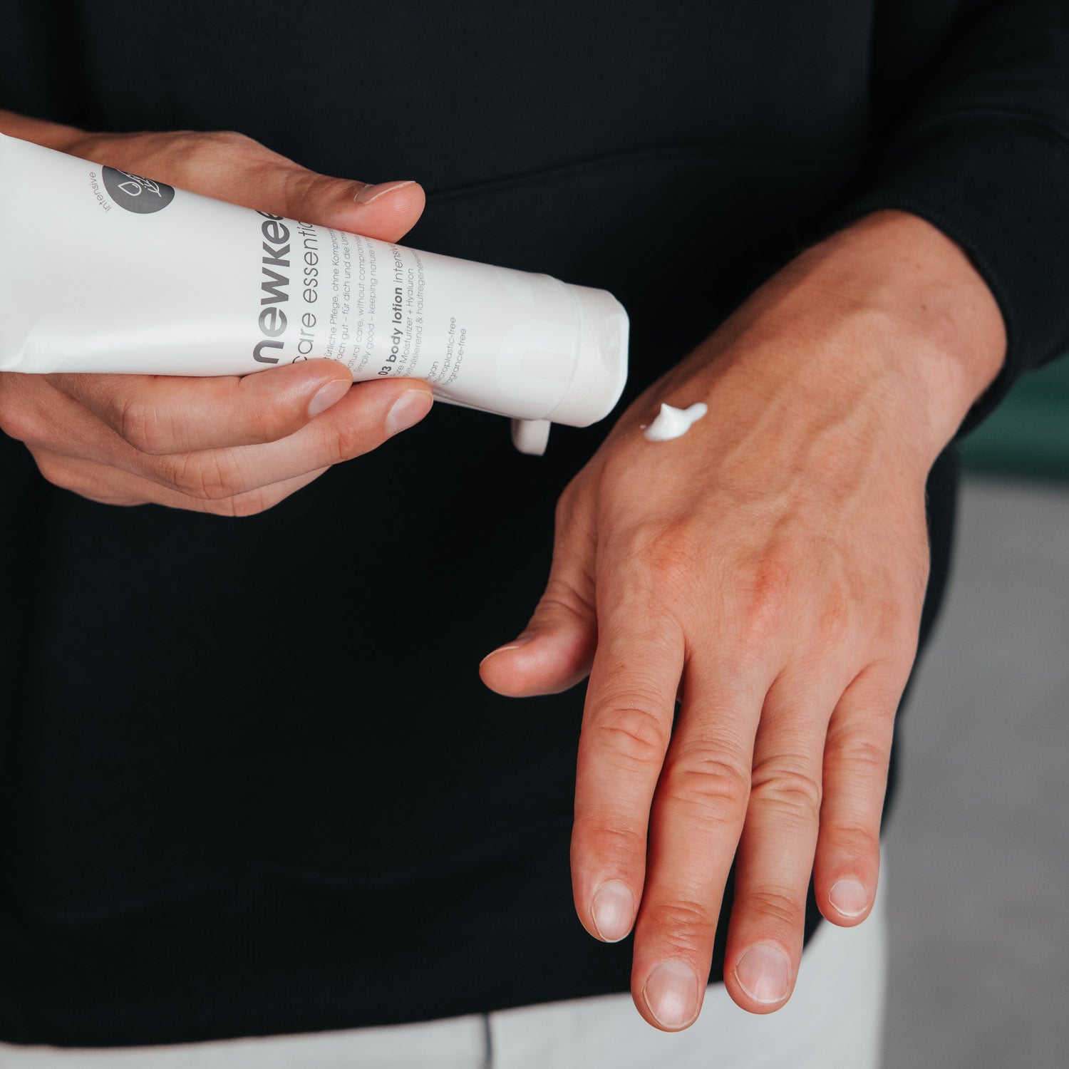 You can use newkee body lotion intensive directly after showering. Apply it to dry skin and massage gently until it is completely absorbed. If needed, you can repeat the application several times a day. The formula of our sustainable body lotion has a pleasantly light texture and absorbs quickly. Look forward to a wonderfully relaxed and cared-for skin feeling – every day.