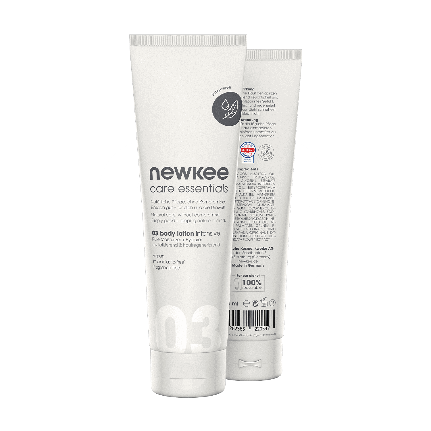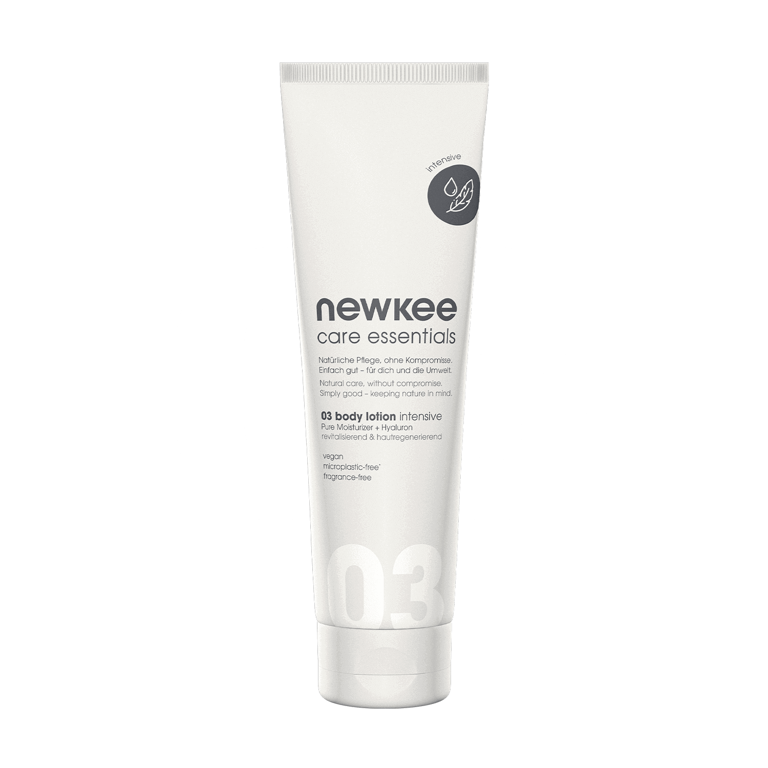 newkee body lotion intensive is a vegan care product for (very) dry and chapped skin. This gentle body lotion is 100% free of fragrances, silicones, parabens, and microplastics.